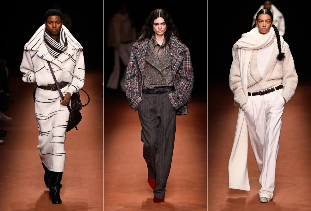 Styling, as seen from SS26 and extrapolated into Fall, leans into pragmatic but playful accents: soft ankle boots and flats, oversized jewellery, a rotation of bags, and berets that punctuate looks without overwhelming them.