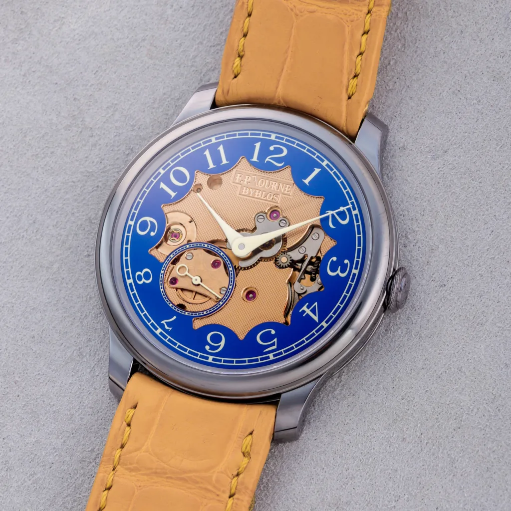 The preview includes the F.P. Journe “Chronomètre Bleu Byblos”, created in 2014 in a run of 99 pieces to mark the opening of F.P. Journe’s Beirut boutique, Rizvi revealed.