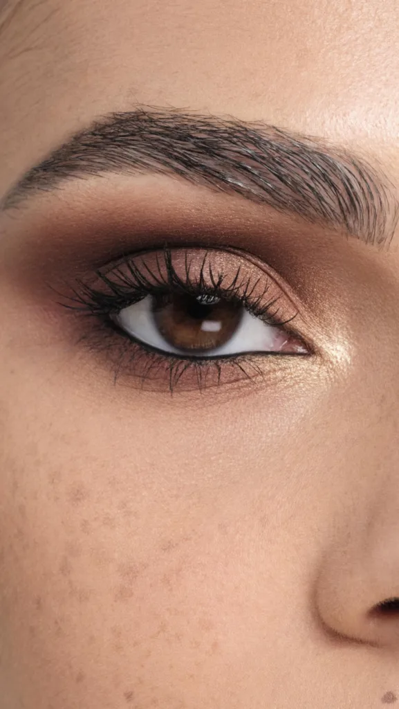 Brown smoked-out eyeliner replaces traditional black, providing eye depth without harsh contrast. At Victoria Beckham’s spring/summer 2026 show, makeup artist Lucia Pica used brown gel liner to create a “lived-in” eyeliner look that appears soft and natural. This style is applied by defining the lash line with brown gel liner and then blending it outward to create a light smoky effect.