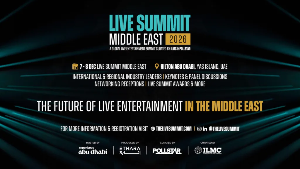 “The Middle East is one of the most dynamic growth markets in live entertainment today. With world-class touring, rapid venue expansion, and a thriving festival and cultural landscape, Abu Dhabi represents the perfect stage to bring the live industry’s global leaders together to shape the future of the business,” Andy Gensler, Editor in Chief, Pollstar added.